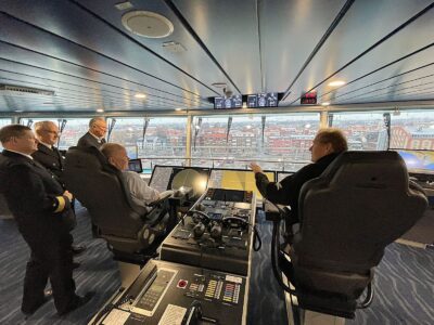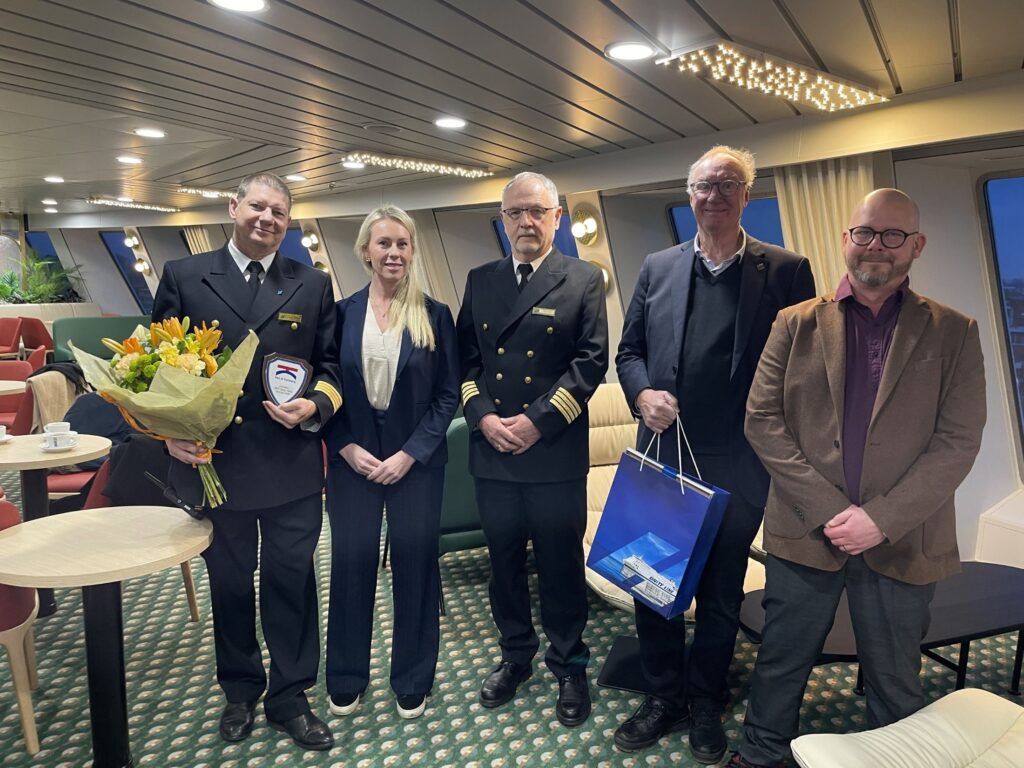 On Wednesday, January 21, Unity Line’s new vessel Jantar Unity was welcomed into the Port of Trelleborg ahead of its maiden voyage to Swinoujscie in Poland. The vessel departed at 10:15 a.m. after a welcoming ceremony where Port of Trelleborg’s CEO Malin Collin presented flowers and a plaque to the vessel’s captains Wojciech Żukowski and Adam Kowalski. The port’s representatives also received a guided tour of the impressive ferry.
