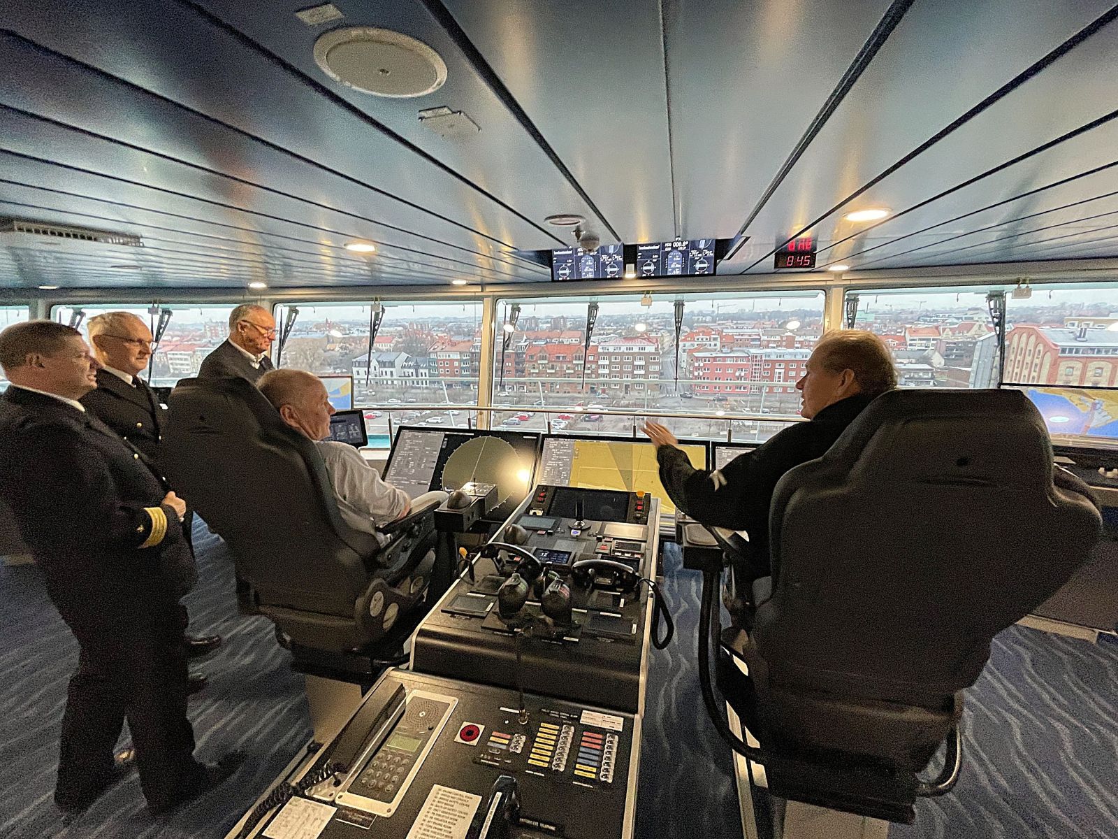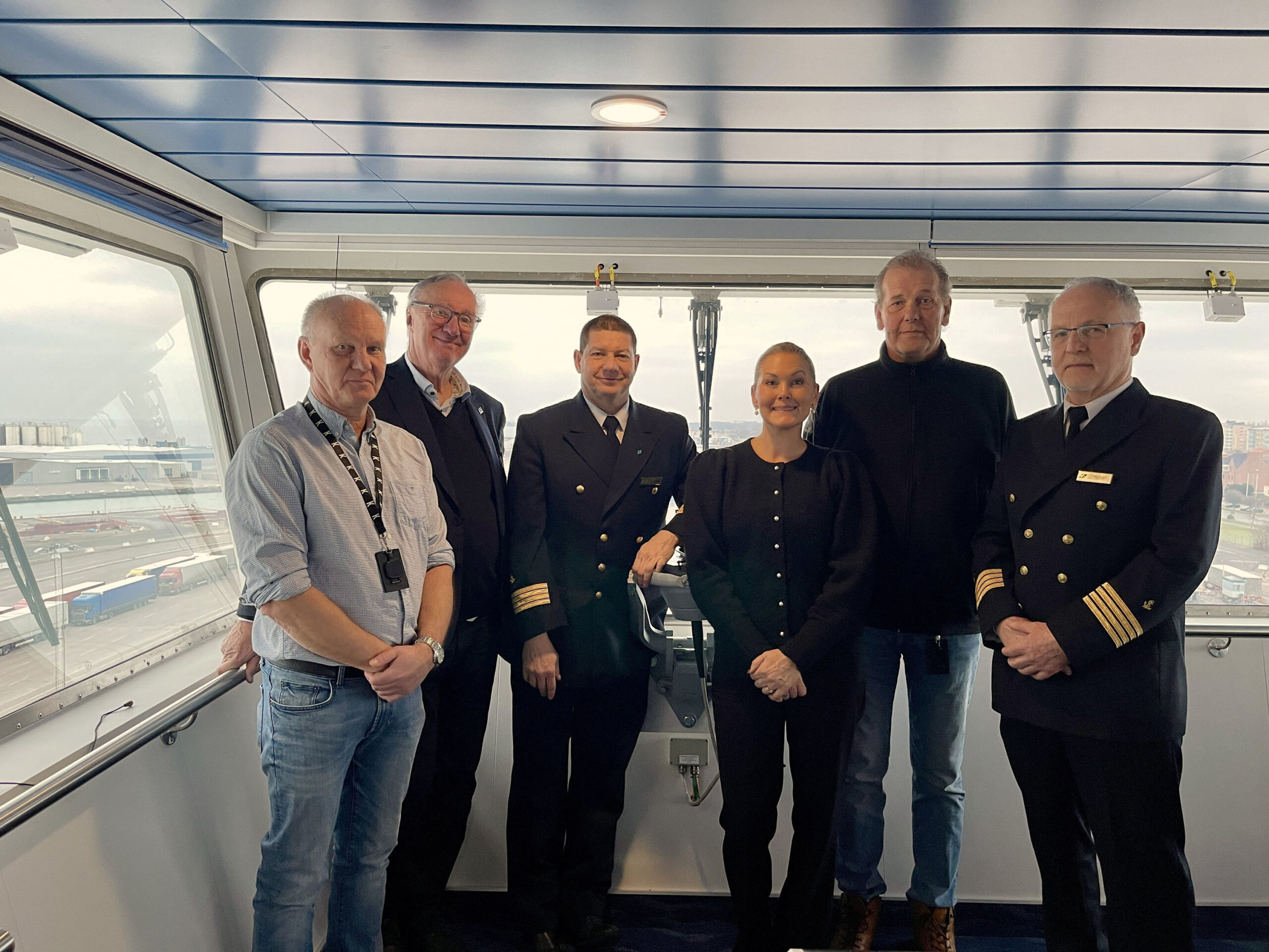 From the left: Captain Wojciech Żukowski, Malin Collin, CEO, Port of Trelleborg, Captain Adam Kowalski, Jan Isaksson, Chairman of the Board, Port of Trelleborg, Per-Ove Forsberg, CEO Unity Line in Sweden.