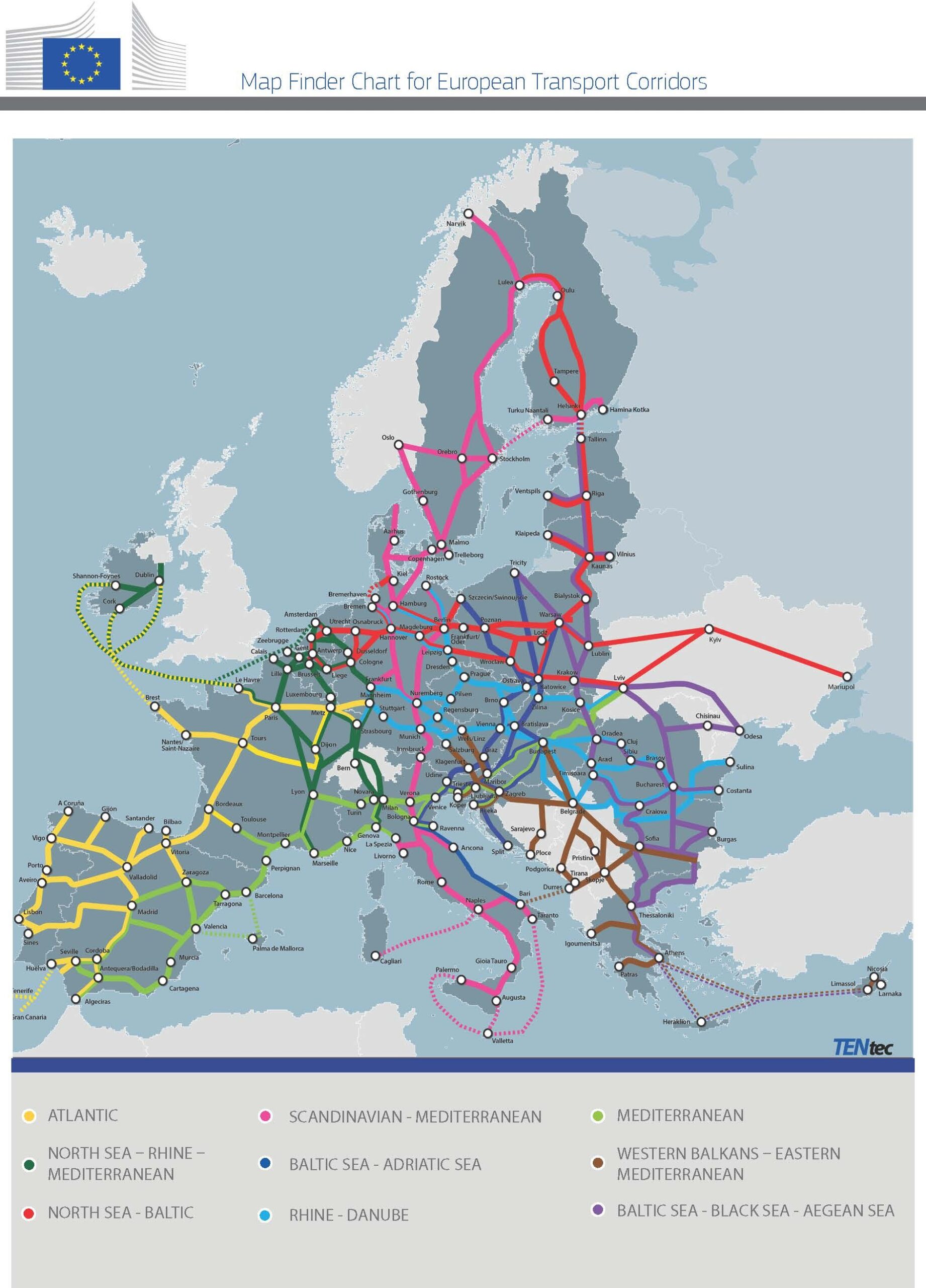 EU har tagit ut 83 hamnar i hela Europa som skall vara stommen i ett stomnätverk, ett ”Core Network” där Trelleborgs Hamn ingår. För att förenkla samarbetet och hålla ihop nätverket, har EU beslutat att bilda nio transportkorridorer och vi ingår i Scandinavian Mediterranean Corridor som går från Finland vid ryska gränsen och ner genom Europa till Valletta i södra Italien. Korridoren är den längsta och största korridoren som innehåller 26 hamnar från 47 regioner i åtta länder.